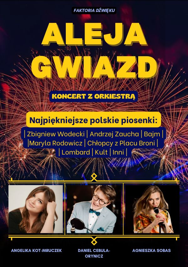 "Aleja Gwiazd" to koncert dla każdego – zarówno dla wiernych fanów muzyki lat 80. i 90., jak i dla tych, którzy dopiero odkrywają piękno polskich przebojów i kultowych utworów sprzed lat. Czeka nas magiczny wieczór wypełniony największymi hitami, wspólnym śpiewem i wyjątkową atmosferą, której nie sposób zapomnieć.