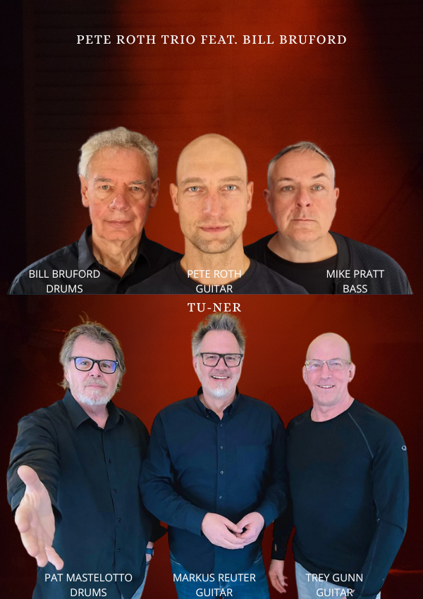 Najpierw na scenie pojawi się TU-NER w składzie Pat Matselotto, Markus Reuter i Trey Gunn, a zarz po nich zagra Pete Roth Trio z legendarnym perkusistą Billem Brufordem. To niecodzienna okazja, by zobaczyć w akcji aż dwóch perkusistów King Crimson – Bruforda i Mastelotta – oraz Trey’a Gunna, który również przez lata współtworzył brzmienie tego kultowego zespołu!