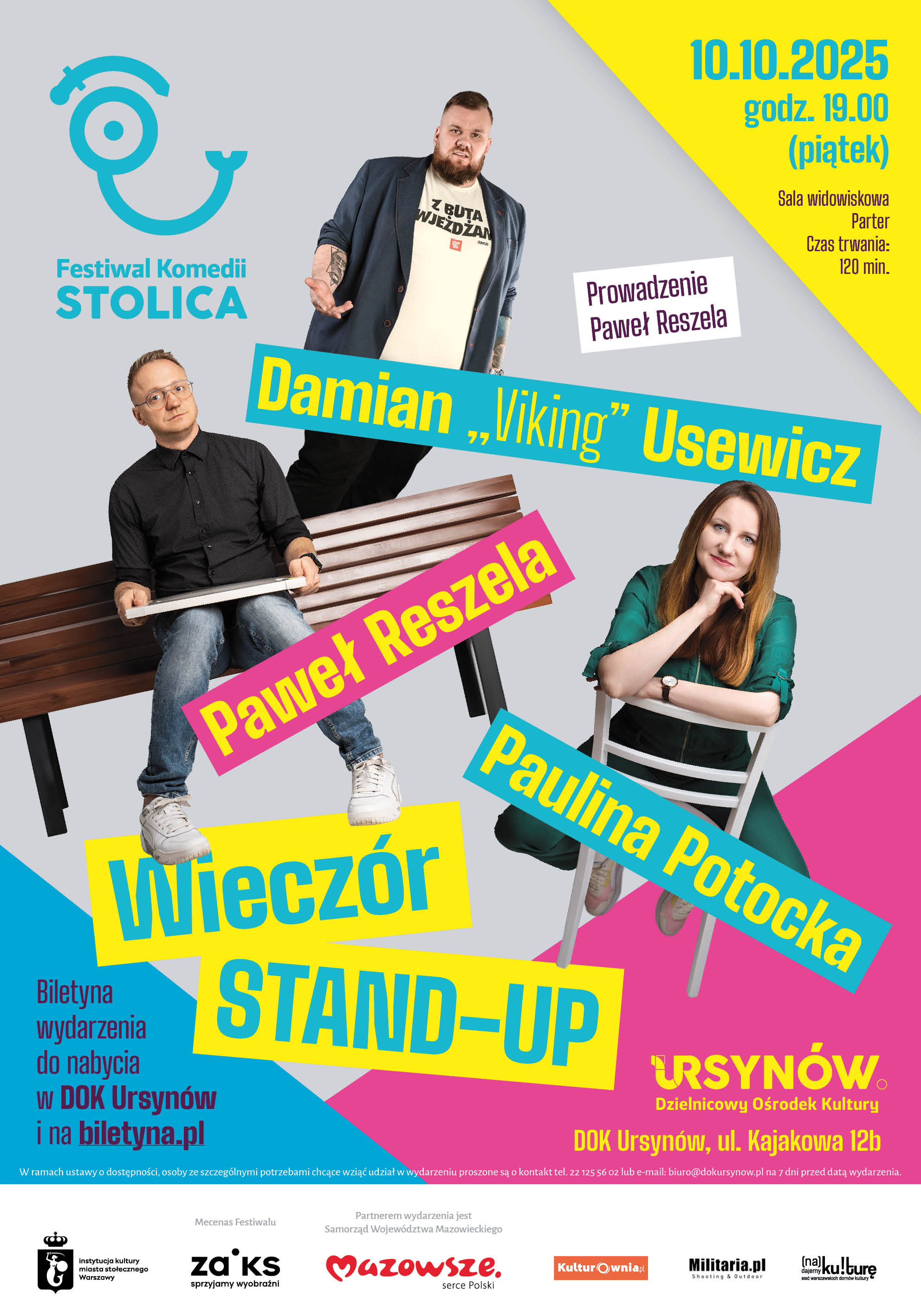 Festiwal Komedii STOLICA - wieczór STAND - UP, Paulina Potocka, Paweł Reszela, Damian "Viking" Usewicz