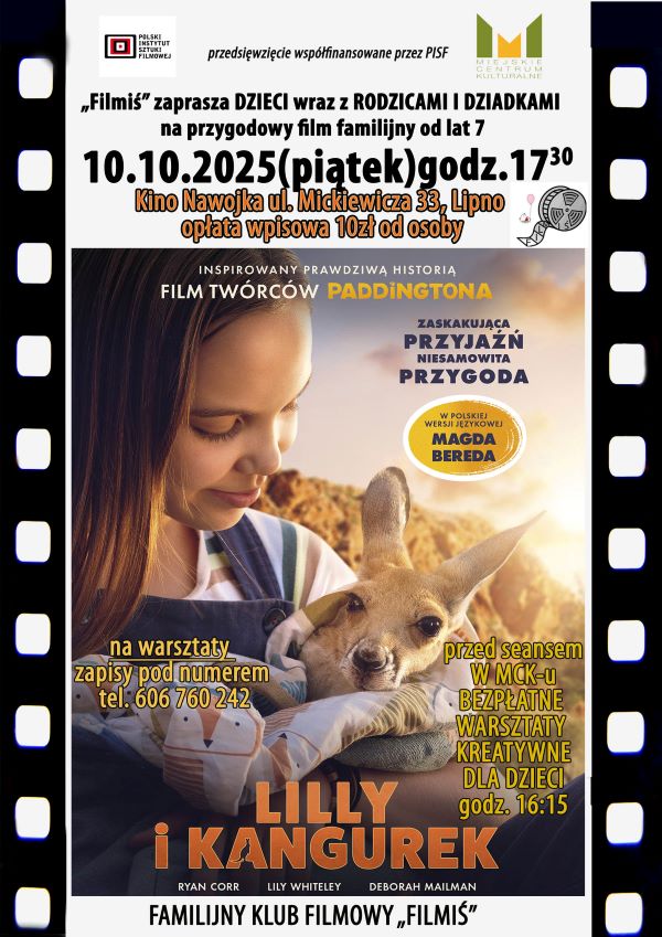 Przed seansem o godz. 16.15 w MCK-u odbędą się bezpłatne warsztaty kreatywne „SŁODKIE KANGURKI”. Na warsztaty obowiązują zapisy pod numerem telefonu 606 760 242. Film o godz. 17.30 w Kinie Nawojka.